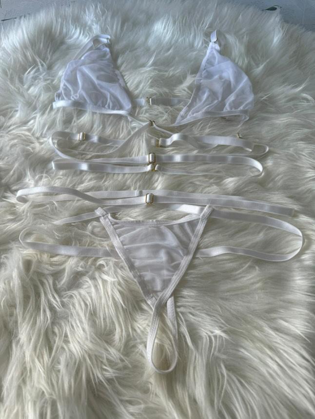 Worn White Strappy T-String & See-Through Top Set – Calendar Edition